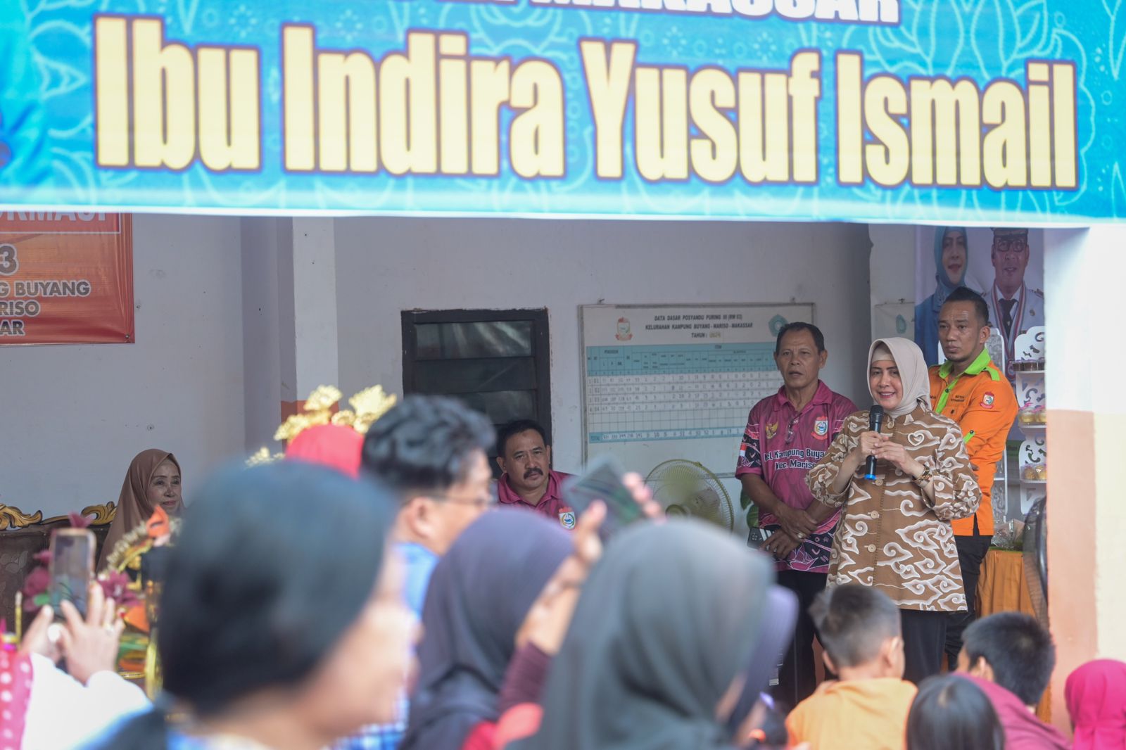 Indira juga mengunjungi Pondok Informasi kelurahan setempat dan melihat hasil kerajinan dari UP2K binaan Pokja 2 TP PKK Kota Makassar yang menggunakan bahan dasar eceng gondok, seperti tas, tempat tisu, boneka mini berbaju adat, serta kue-kue tradisional.