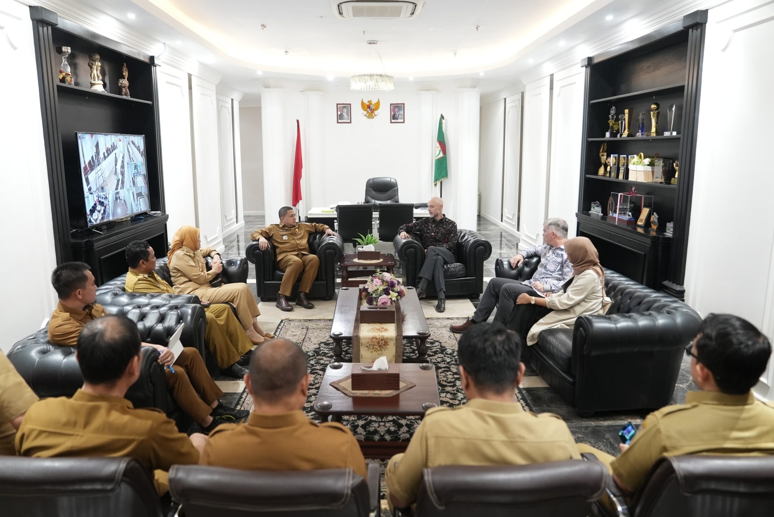 MEDIACREATIVE.ID – MAKASSAR,– Wali Kota Makassar, Munafri Arifuddin, menerima kunjungan kehormatan Konsul Jenderal (Konjen) Amerika Serikat untuk Indonesia Christopher Green, di Balai Kota Makassar, Senin (10/3/2025).