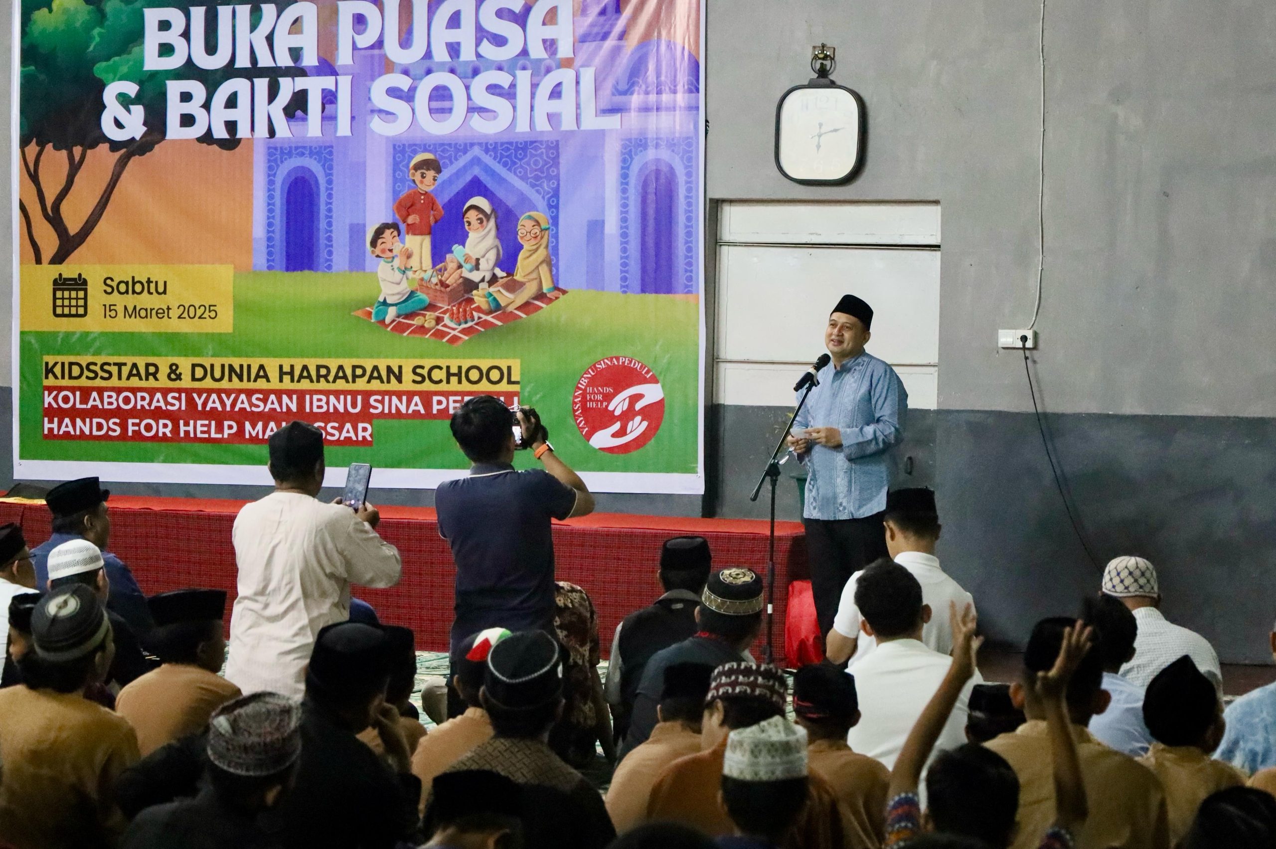 Buka puasa bersama ini juga dirangkaikan dengan bakti sosial yang digelar atas kolaborasi Yayasan Ibnu Sina Peduli dan Hands for Help Makassar. Acara berlangsung di Aula Kids Star School, Kecamatan Panakkukang, pada Sabtu (15/3/2025).