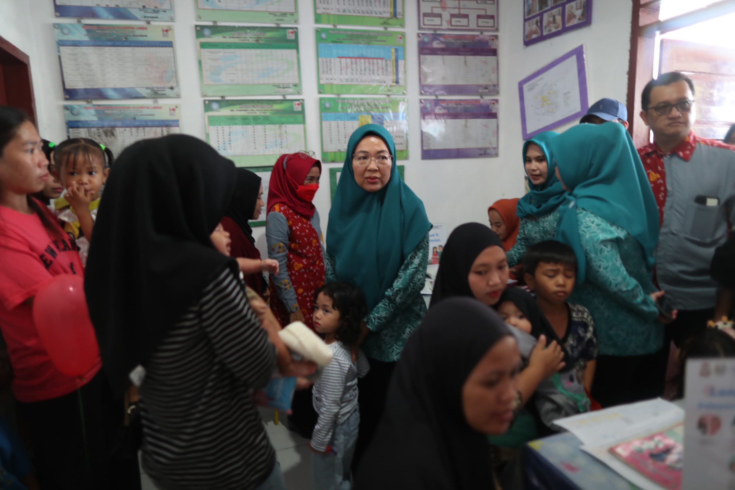 Melinda pun langsung memantau pelaksanaan kegiatan posyandu yang tengah berlangsung dan menyaksikan lima langkah utama Posyandu.