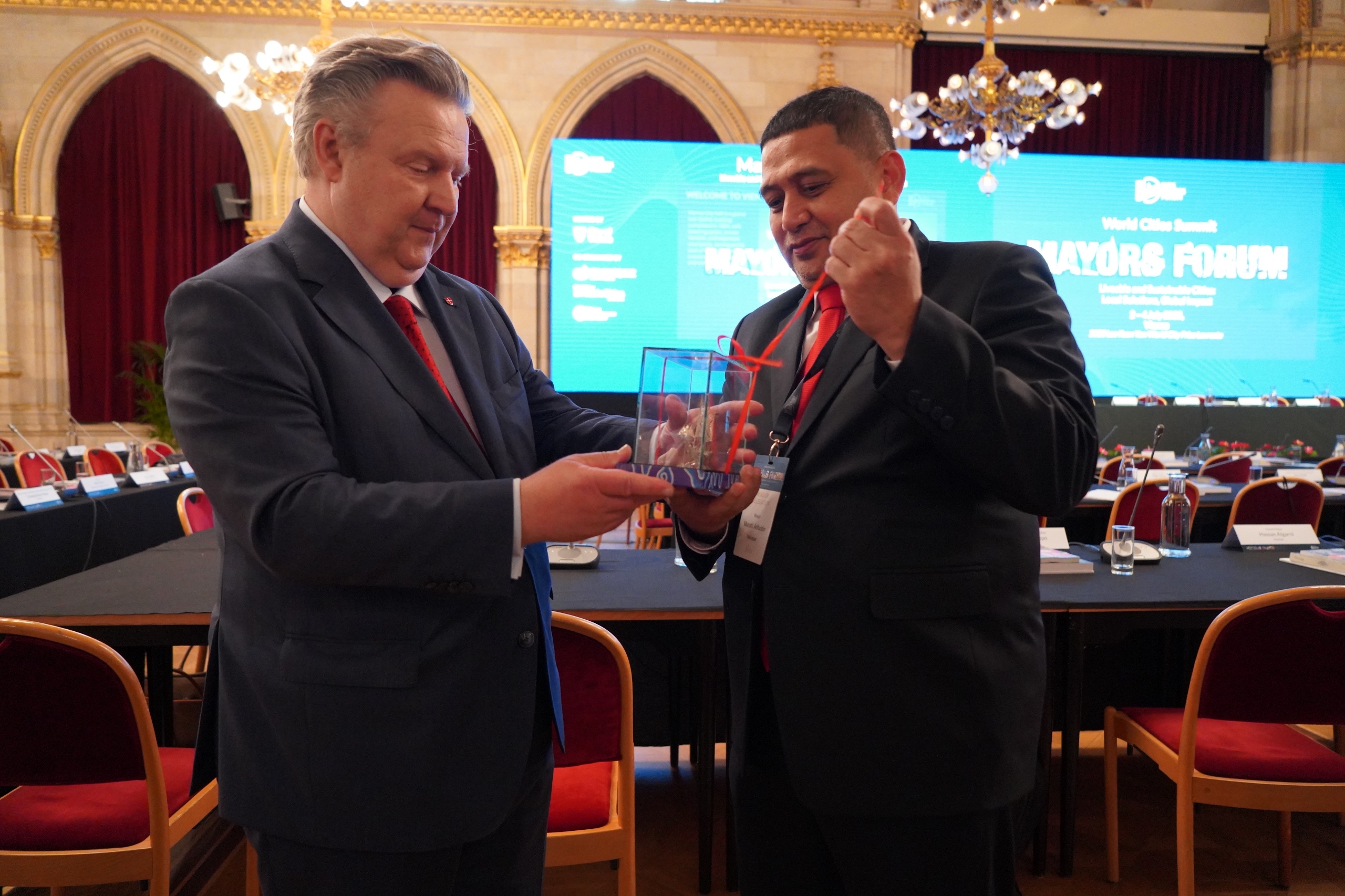 Momen Hangat di WCSMF 2025, Munafri Hadiahkan Souvenir Khas Makassar untuk Wali Kota Vienna