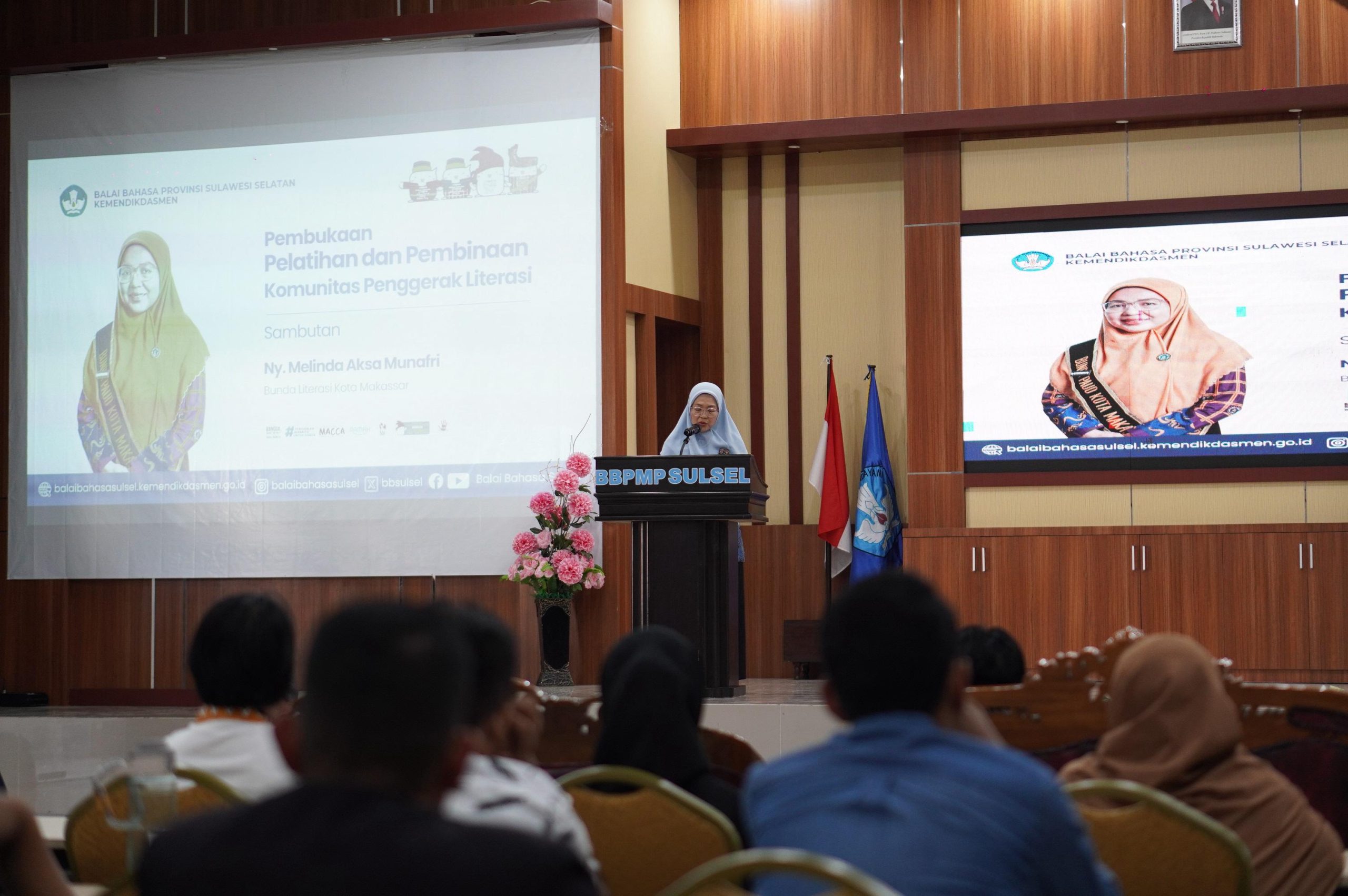 MEDIACREATIVE.ID – MAKASSAR,— Bunda Literasi Kota Makassar, Melinda Aksa, menghadiri dan membuka secara resmi kegiatan Pelatihan dan Pembinaan Komunitas Penggerak Literasi Tahun 2025 yang diselenggarakan oleh Balai Bahasa Provinsi Sulawesi Selatan. Kegiatan ini berlangsung di Balai Besar Penjaminan Mutu Pendidikan Provinsi Sulawesi Selatan, Jumat (25/7/2025), dan dihadiri oleh para pimpinan komunitas literasi dari berbagai daerah di Sulawesi Selatan.