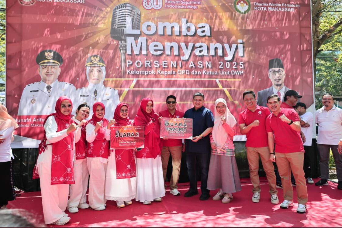 MEDIACREATIVE.ID – MAKASSAR,- Dalam semarak HUT ke 80 tahun Republik Indonesia Pemerintah Kota Makassar melaksanakan lomba menyanyi kelompok yang diikuti oleh seluruh pimpinan Satuan Kerja Perangkat Daerah (SKPD) Lingkup Pemerintah Kota Makassar salah satu yang mengikuti adalah Dinas Sosial Kota Makassar.