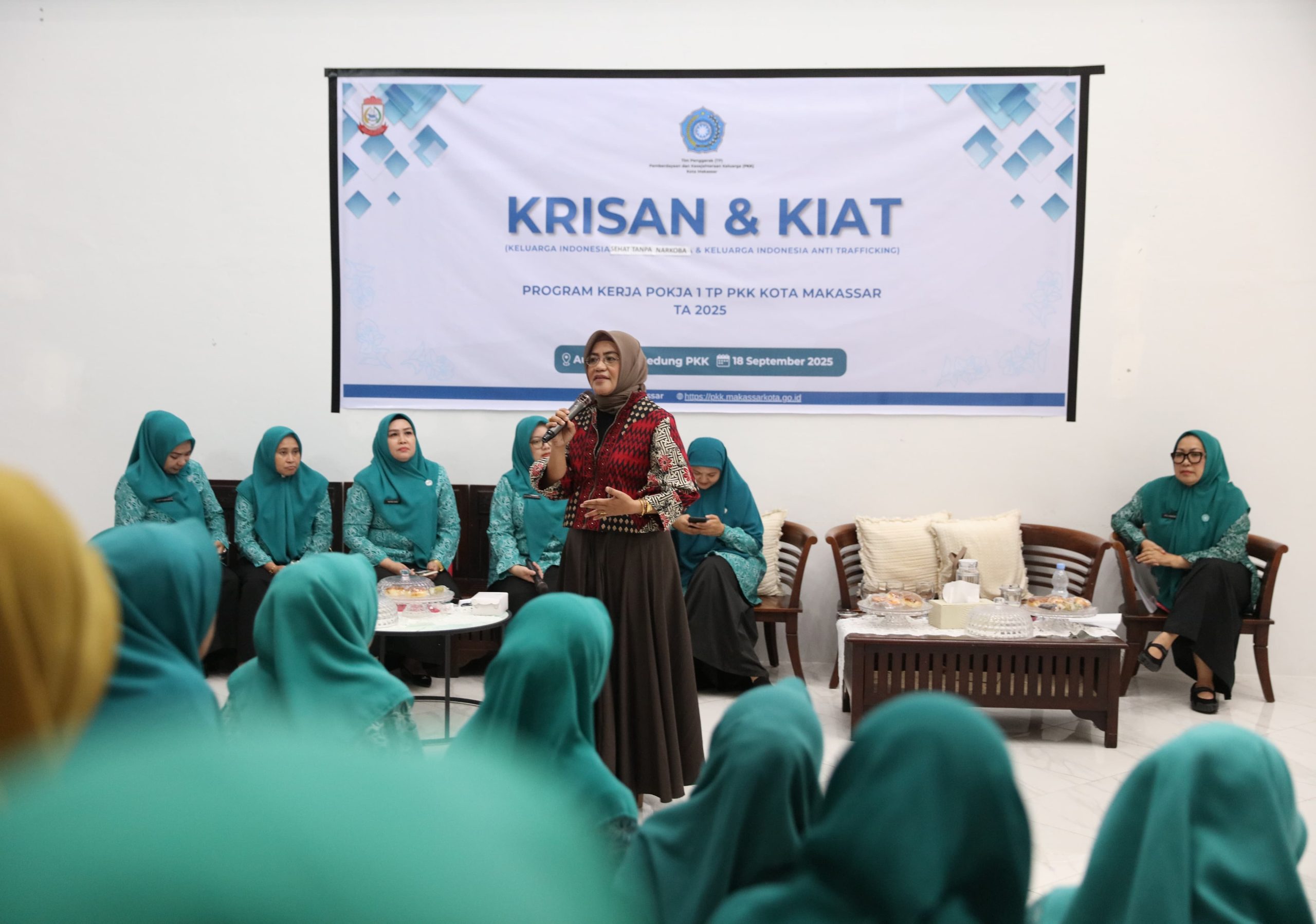 MEDIACREATIVE.ID – MAKASSAR,– TP PKK Kota Makassar melalui Pokja I menggelar sosialisasi Keluarga Indonesia Sehat Tanpa Narkoba (Krisan) dan Keluarga Indonesia Anti Trafficking (Kiat) di Auditorium pada Kamis (19/9/2025).