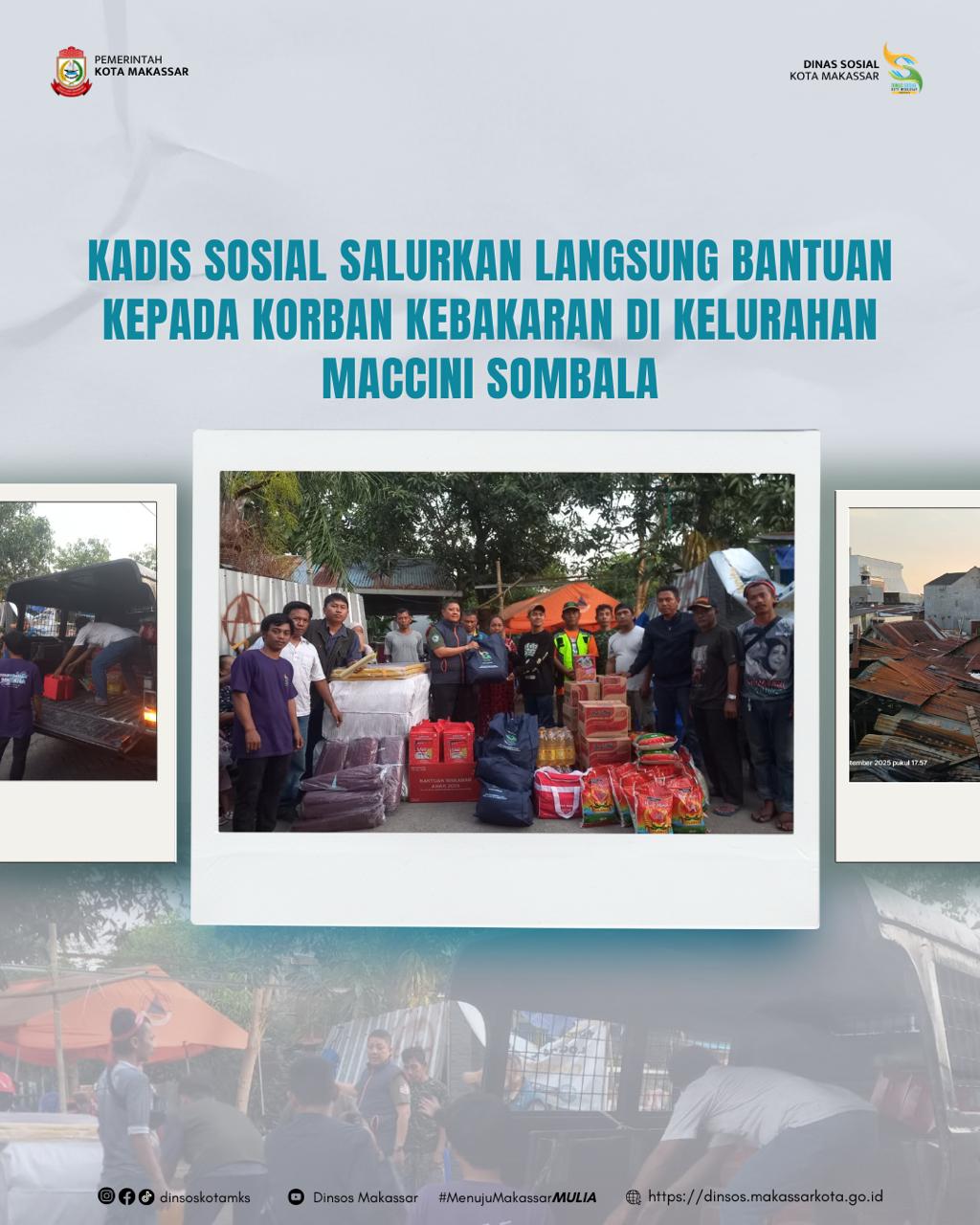 MEDIACREATIVE.ID – MAKASSAR,- Dinas Sosial Kota Makassar menyalurkan bantuan kepada warga yang menjadi korban kebakaran di Jalan Teluk Bayur, Kelurahan Maccini Sombala, Kecamatan Tamalate, Minggu (21/9/2025).
