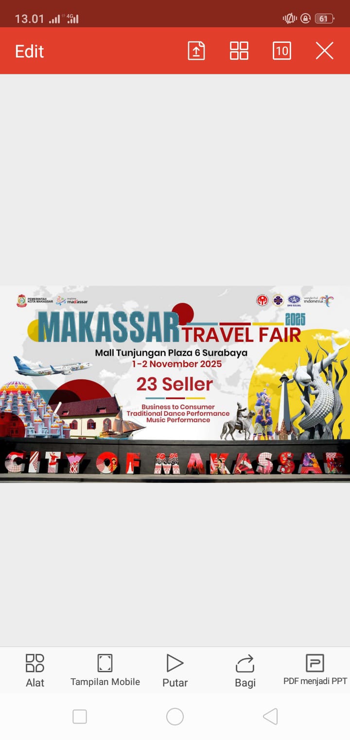 Dari Bidang Promosi dan Pemasaran juga mengadakan Makassar Direct Sale dan Makassar Travel Fair yang berlangsung tanggal 31 Oktober hingga 2 Nopember 2025 di Kota Surabaya.