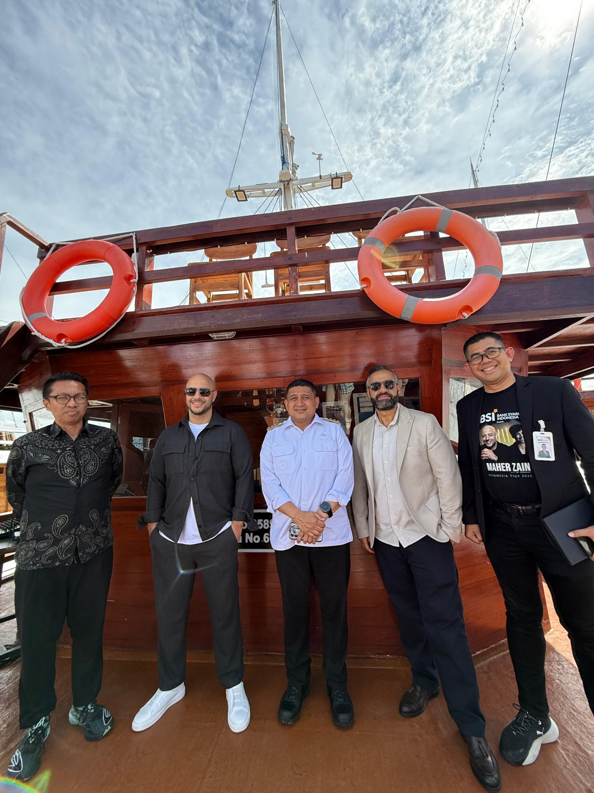 Maher Zain tampak sangat menikmati perjalanan di laut, dengan angin sepoi-sepoi yang menerpa wajahnya.