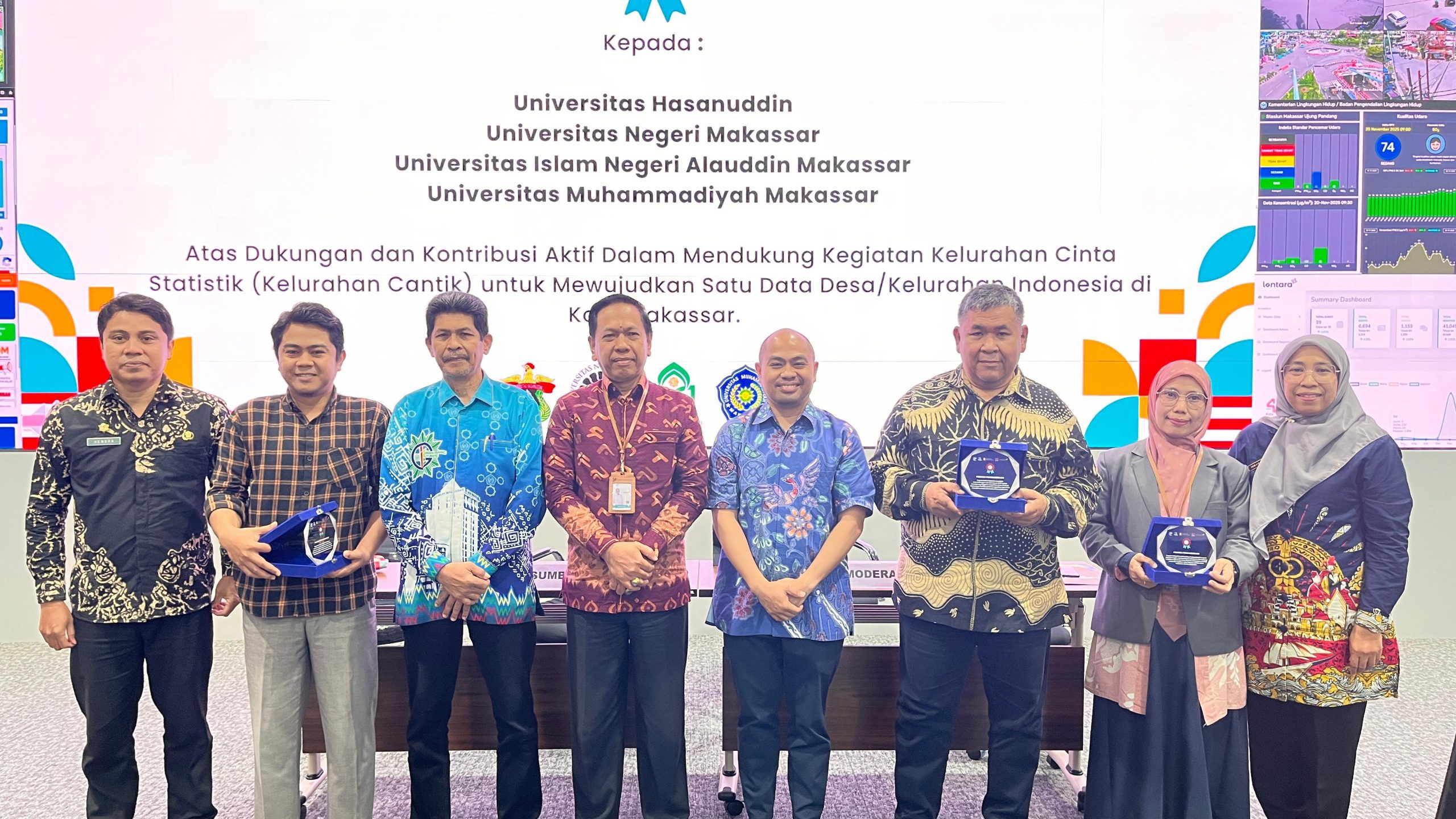 Pada kesempatan tersebut, Kominfo Makassar juga memberikan penghargaan kepada empat universitas mitra—Universitas Hasanuddin, Universitas Negeri Makassar, UIN Alauddin Makassar, dan Universitas Muhammadiyah Makassar, atas kontribusi aktif dalam mendukung program Kelurahan Cantik.