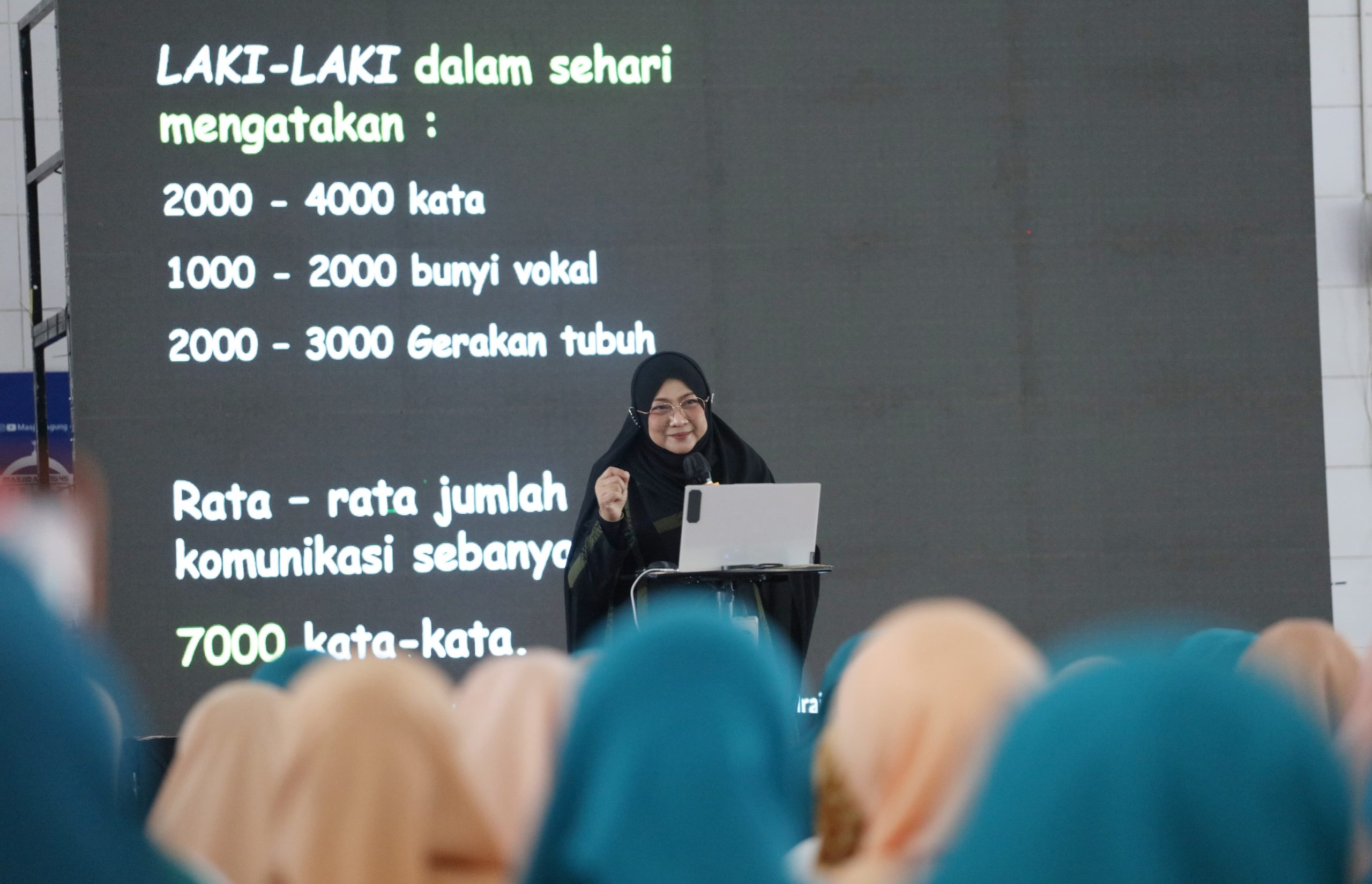 Dr. Aisah turut memaparkan tentang perbedaan fungsi hypothalamus pada otak laki-laki dan perempuan. Pada laki-laki, bagian ini lebih dominan sehingga mereka secara alami memiliki fokus kuat pada aspek keamanan, kebutuhan dasar, hingga dorongan biologis. “Pemahaman ini penting agar perempuan dapat mengetahui pendekatan yang tepat dalam berkomunikasi,” tambahnya