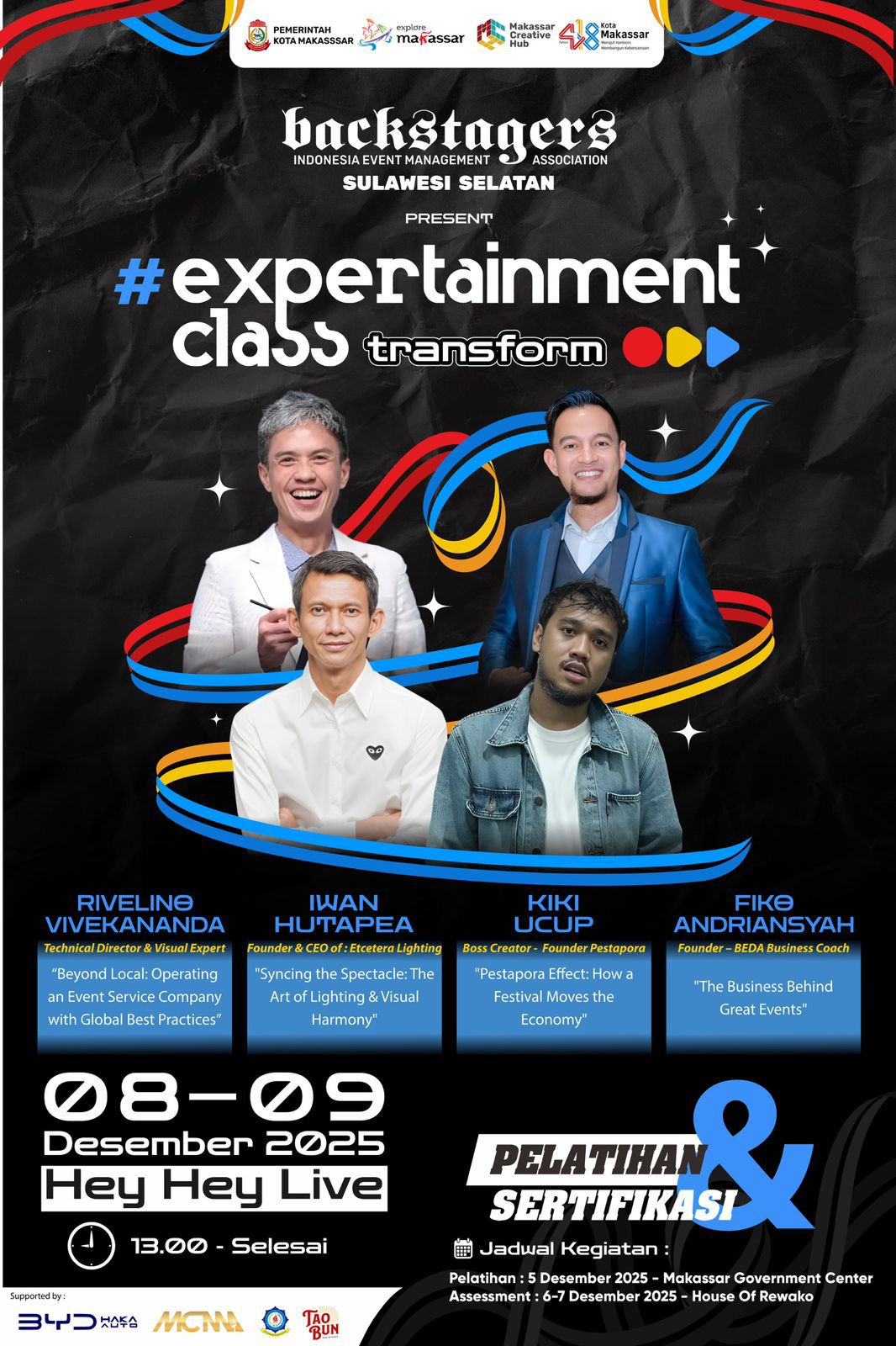 “Setelah pelaksanaan sertifikasi ini dilanjutkan dengan pelatihan yang dikerjasamakan dengan Forum Backstagers Indonesia.