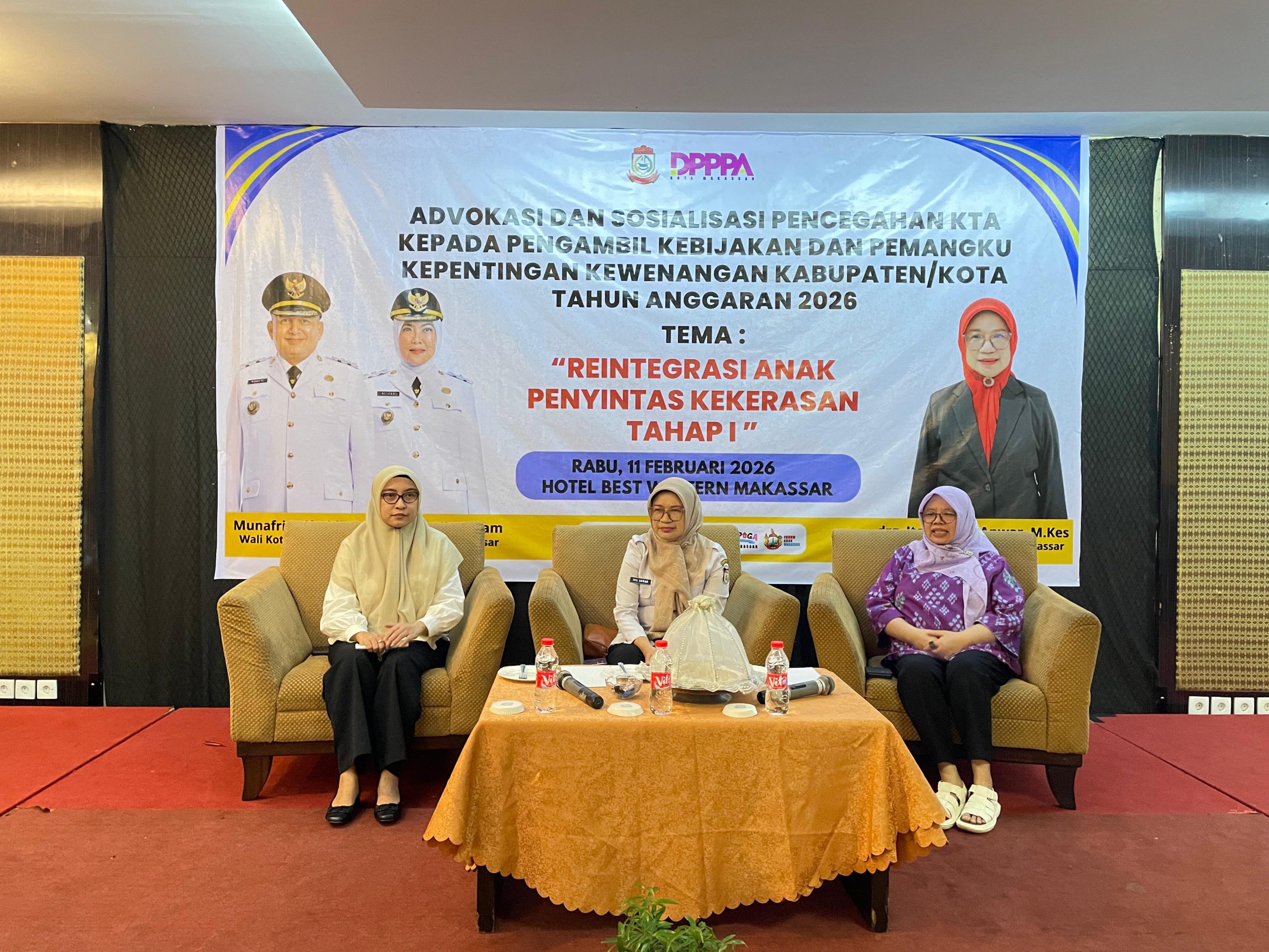 Edukasi reintegrasi anak penyintas kekerasan berlangsung selama dua hari, Rabu 11 hingga Kamis 12 Februari 2026 di Hotel Best Western.