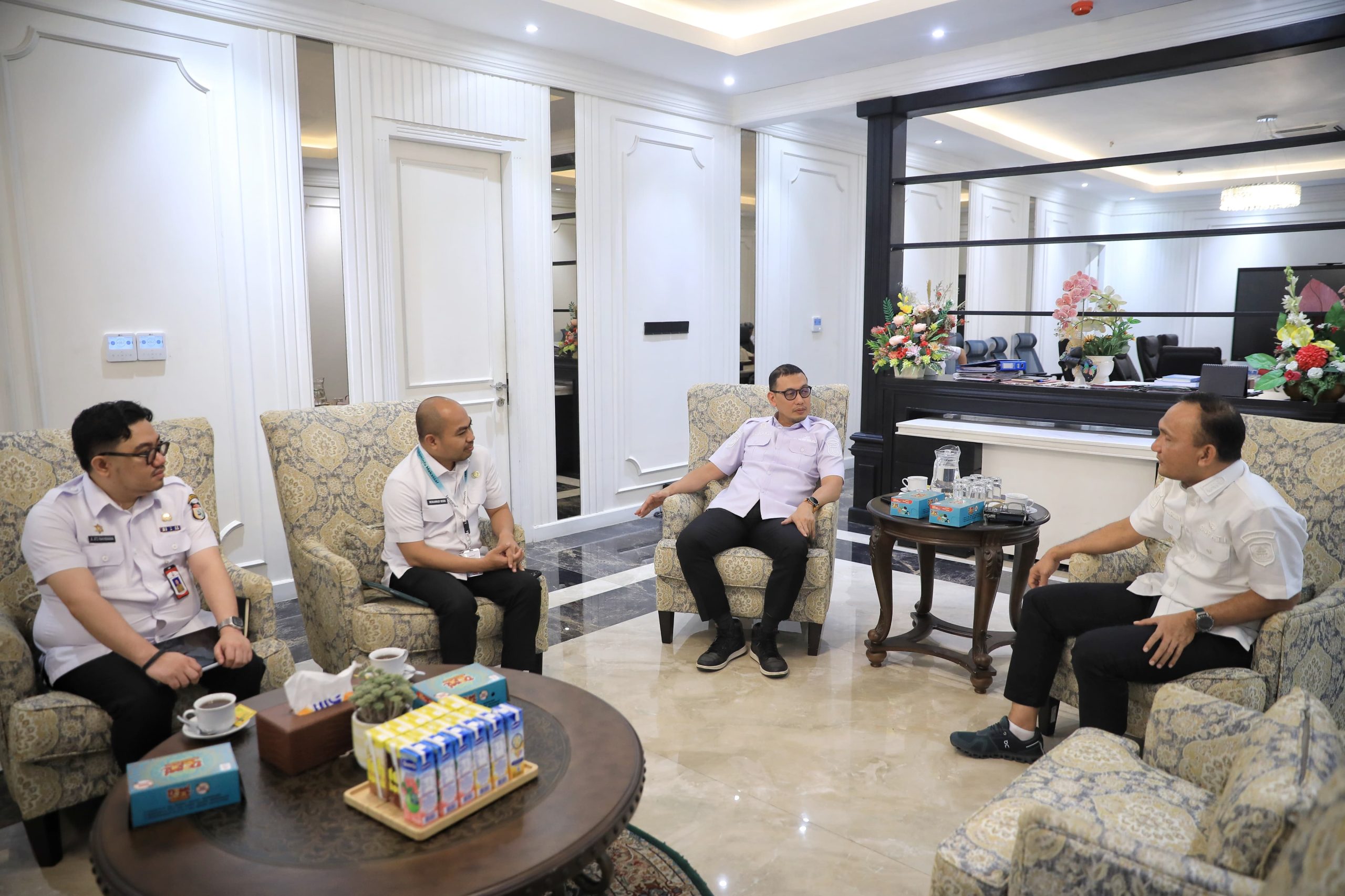 MEDIACREATIVE.ID – MAKASSAR,— Sekretaris Daerah (Sekda) Kota Makassar, Andi Zulkifly, menerima kunjungan kerja Bupati Sarolangun, Provinsi Jambi, H. Hurmin, SE, di Kota Makassar di ruang rapat Sekda Makassar, Kantor Balai Kota Makassar, Rabu (11/2).
