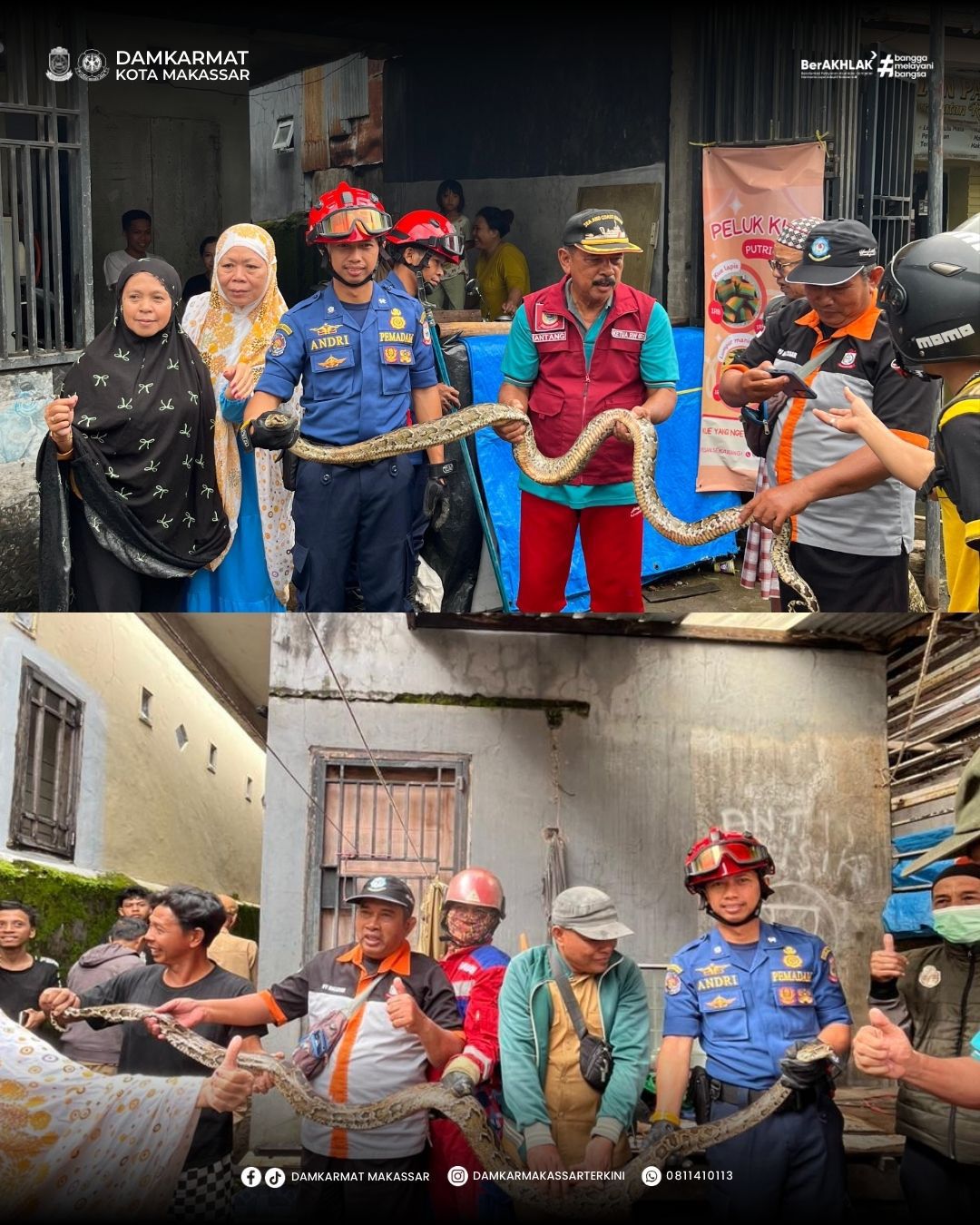 Tim Penyelamat Posko Pengayoman berhasil mengevakuasi seekor ular yang masuk ke dalam rumah warga di Jl. Pannara, Kelurahan Antang, Kecamatan Manggala.