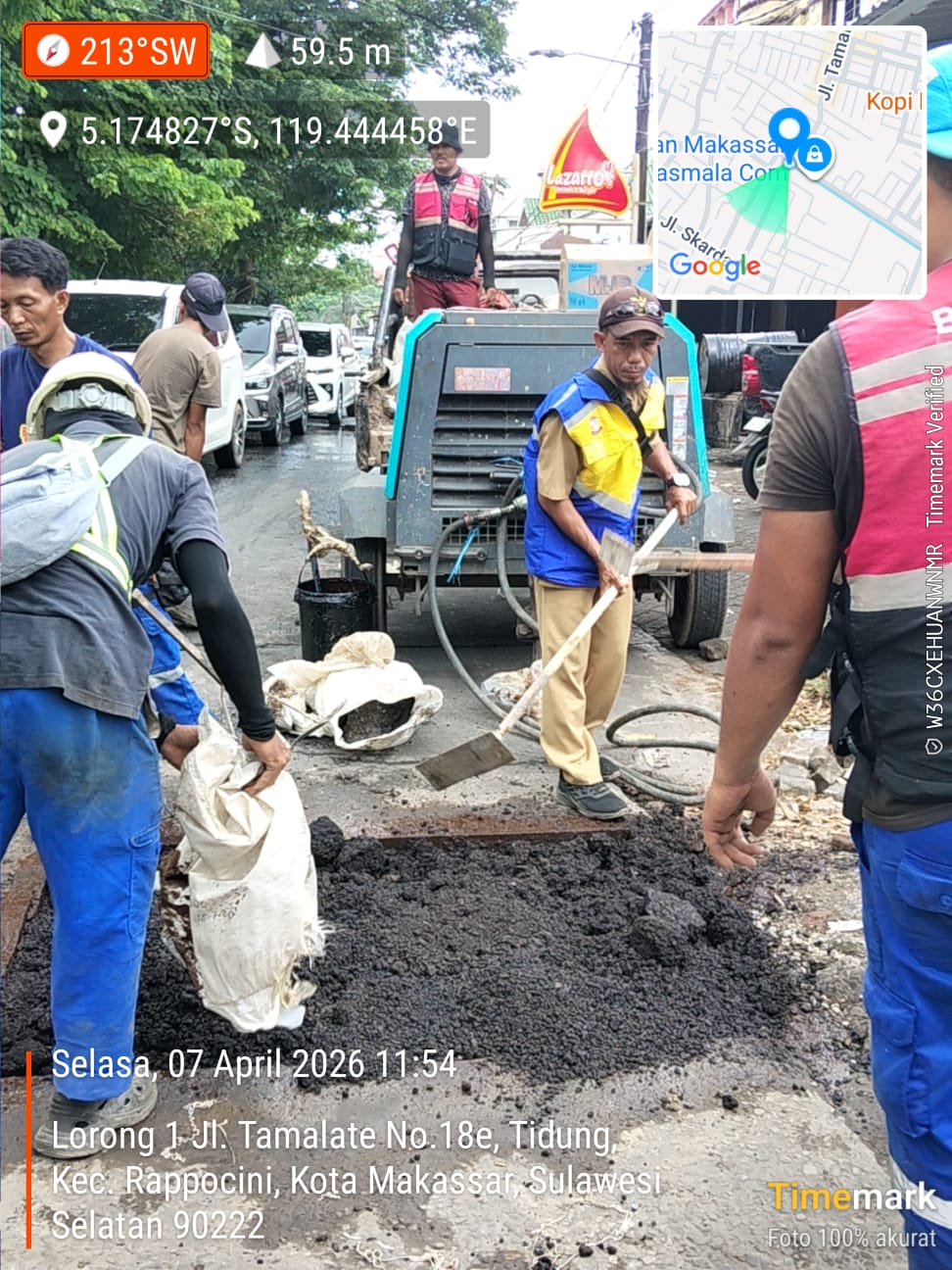 Bidang Jalan dan Jembatan, fokus pada penempelan jalan berlubang di Jl. Skarda Tamalate, Jl. Sungai Limbotodan perbaikan jalan paving blok di :