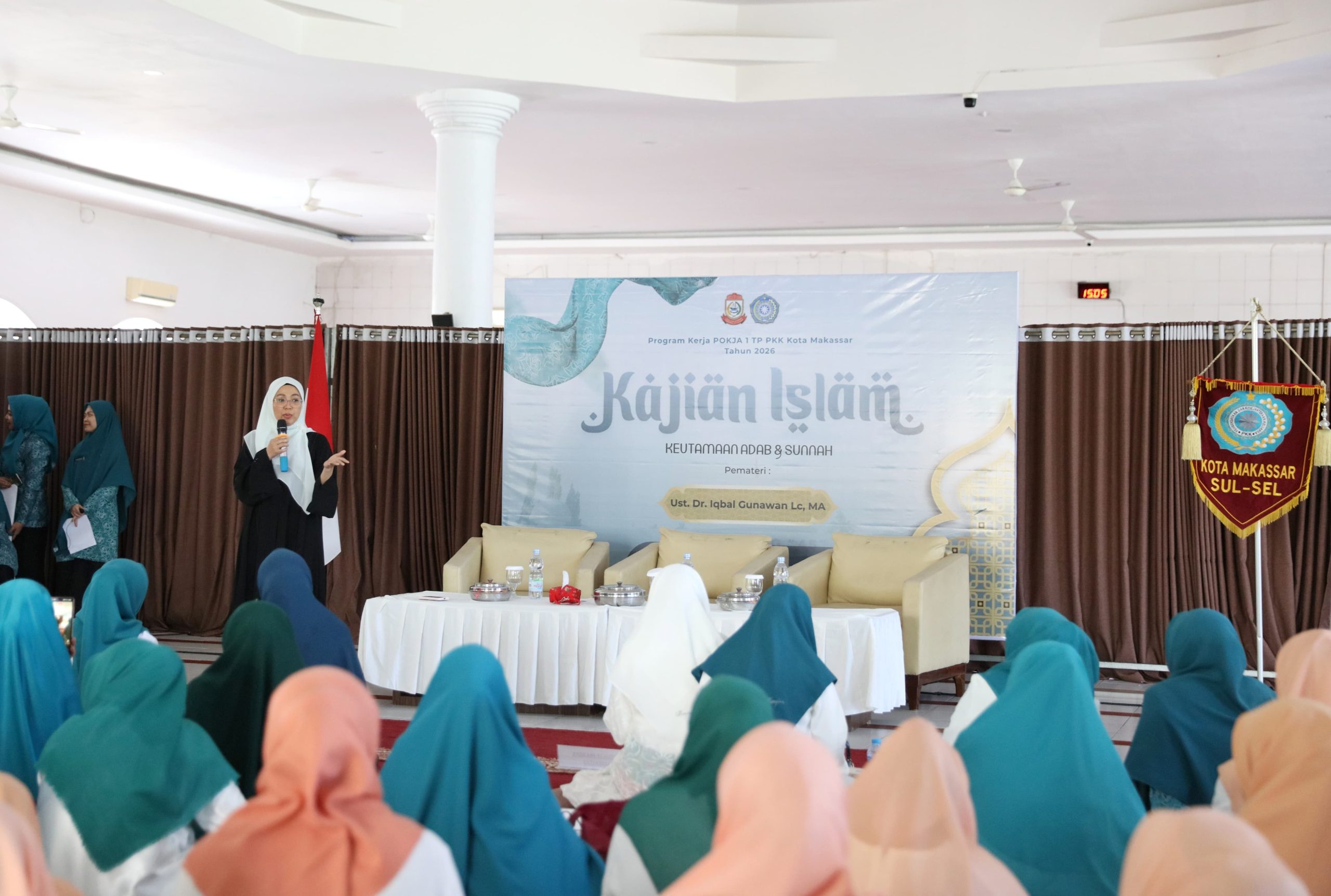 Sementara itu, kajian Islam perdana TP PKK Kota Makassar tahun 2026 ini menghadirkan penceramah Ustaz Dr. Iqbal Gunawan yang membawakan materi tentang keutamaan adab dan sunnah dalam kehidupan sehari-hari.