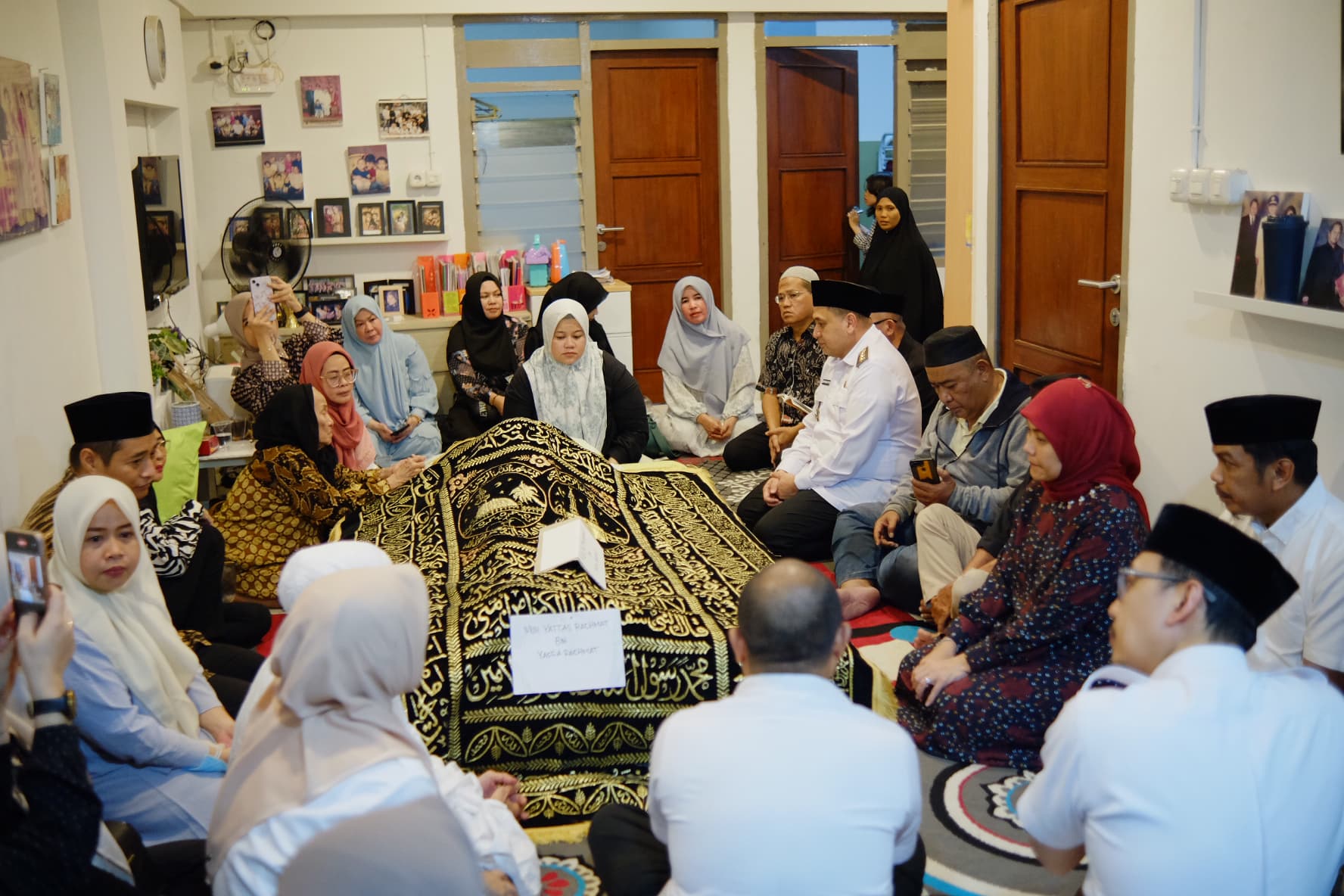 Suasana duka menyelimuti rumah duka, di mana keluarga, jajaran Pemkot Makassar, serta kerabat almarhum turut hadir mendoakan kepergian beliau.